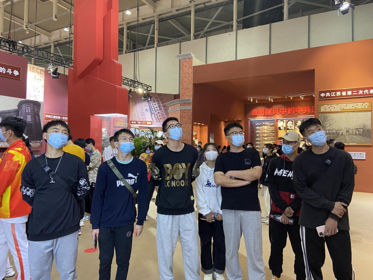 10月26号下午,体育学院党总支组织学生党支部、19体育教育转本班和入党积极分子代表们前往南京国际博览中心参观“百年征程初心永恒——中国共产党在江苏历史展”。