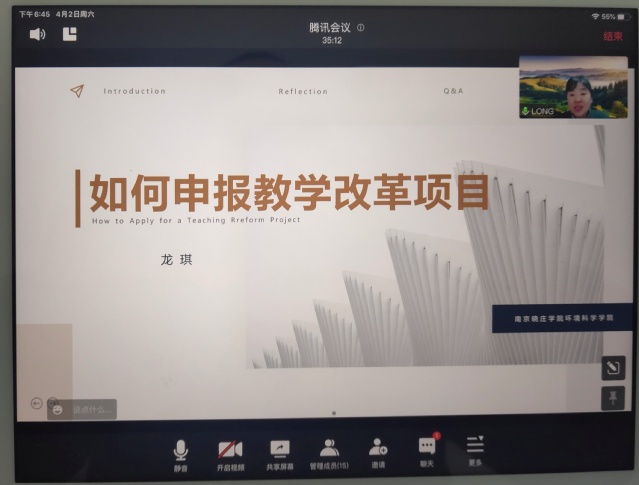 为进一步推动和深化学院教育教学研究与改革,鼓励和支持广大教师积极参与教育教学研究与改革工作,提高我院教师教育教学研究水平,42日下午,学院邀请环境科学学院化学师范专业负责人龙琪教授作了题为《如何申报教学改革项目》的“线上”专题讲座,学院院长、教务负责人员、各教研室主任及骨干教师参加,体育教育专业负责人解祥梅老师主持。