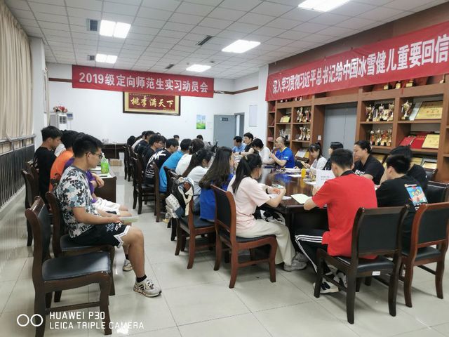 为保证2019级定向师范生实习工作顺利开展,6月21日下午,我院于体育馆210会议室召开实习动员会。2019级全体定向师范生及指导老师、体育教育专业负责人解祥梅、教学实践中心主任张红、教务秘书晏苏萍、院长张伟、院长助理赵喜迎参加此次会议。