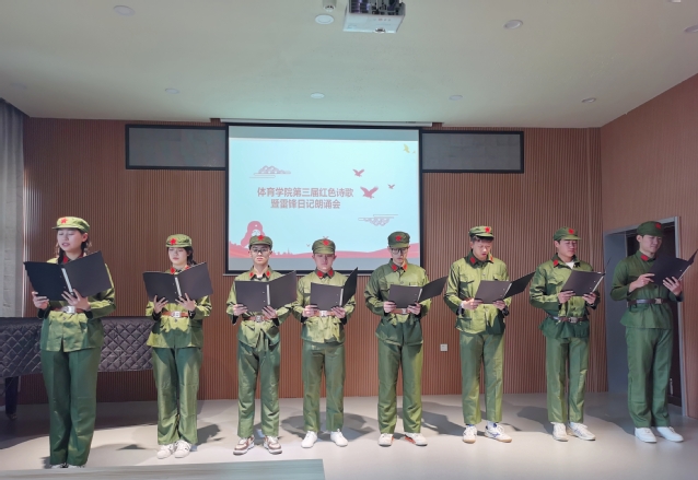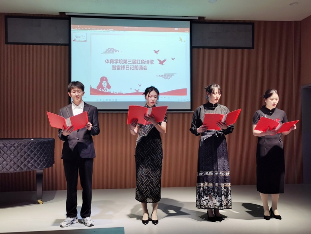 328日下午,体育学院举办第三届红色诗歌暨雷锋日记朗诵会,共有13个班级派选手参加,学院团委老师和辅导员出席担任评委,100多名学生在现场聆听。