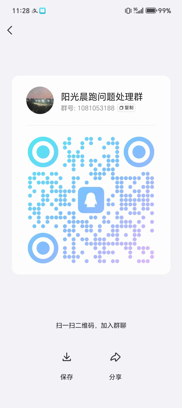 各位同学健身跑次数现已公示,对次数如有异议请于2024年12月17号—12月19号,将证明材料发送至邮箱:323494278@qq.com,同时扫码加入下方QQ群,届时将在此群反馈提交申请学生的申诉结果。注意:一旦超过指定时间,数据上传系统后,无法更改。